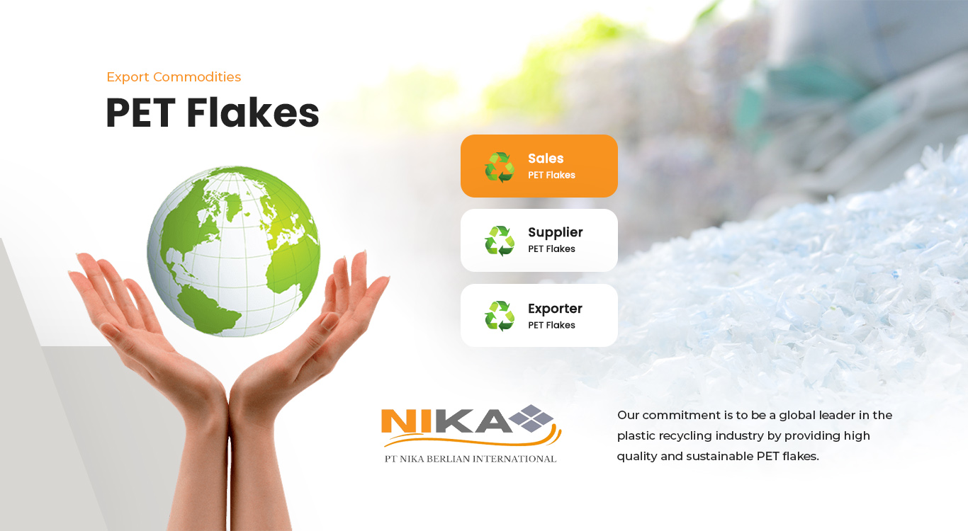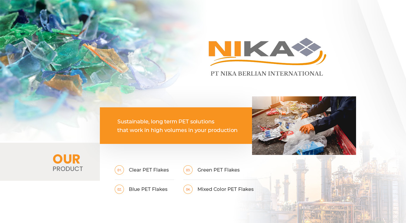 Nika is one of the PET flakes supplier companies where our marketing area reaches international markets. Our main product is currently related to plastic recycling, especially flakes from PET plastic bottles and we hope that in the future we can develop other types of recycled plastic such as PP, PE and others.
